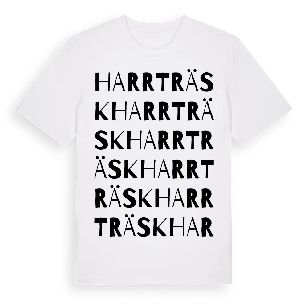 Harrträsk ordlek t-shirt är inspirerad av Harrträsk i Norrbottens län, Sverige. Tröjan är designad för dig som har en speciell koppling till platsen – oavsett om du bor här, har rötterna här eller bara älskar Harrträsk.