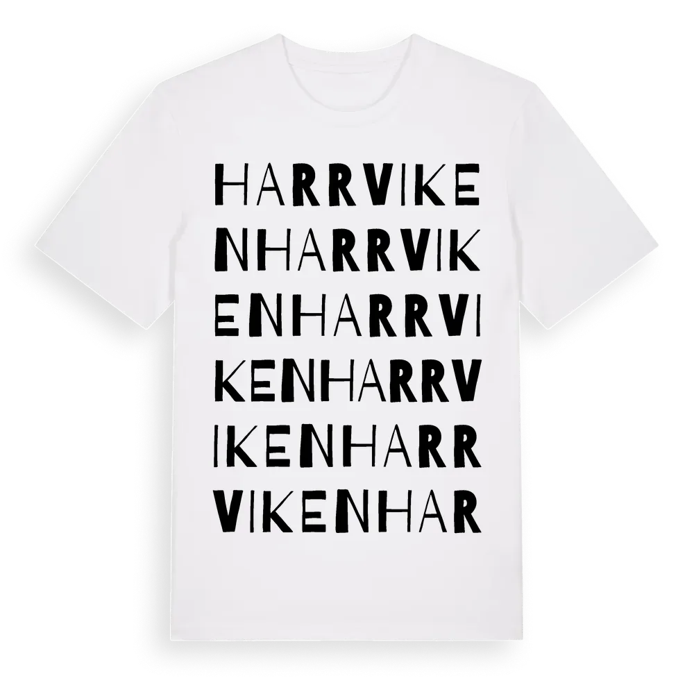 Harrviken ordlek t-shirt är inspirerad av byn Harrviken i Norrbottens län, Sverige. Tröjan är designad för dig som har en speciell koppling till platsen – oavsett om du bor här, har rötterna här eller bara älskar Harrviken.