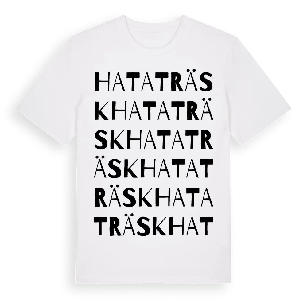 Hataträsk ordlek t-shirt är inspirerad av Hataträsk i Norrbottens län, Sverige. Tröjan är designad för dig som har en speciell koppling till platsen – oavsett om du bor här, har rötterna här eller bara älskar Hataträsk.