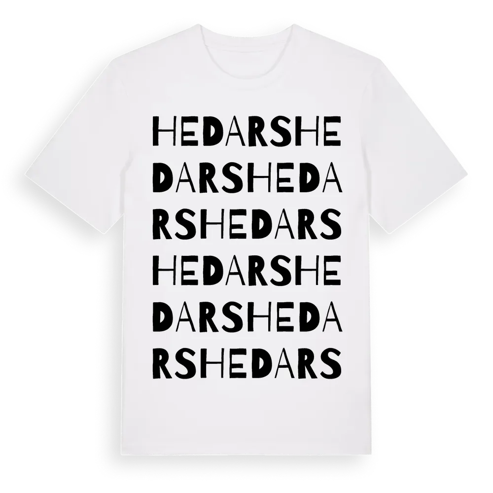 Hedars ordlek t-shirt är inspirerad av Hedars i Norrbottens län, Sverige. Tröjan är designad för dig som har en speciell koppling till platsen – oavsett om du bor här, har rötterna här eller bara älskar Hedars.
