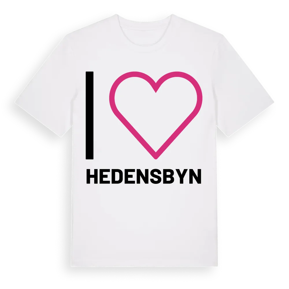 Det klassiska "I ❤ Hedensbyn"-motivet i stort format som täcker hela bröstet. För dig som vill visa kärleken till Hedensbyn på riktigt. Premium bomull, unisex – från byn Hedensbyn i Norrbottens län.