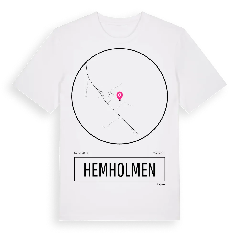 Hemholmen t-shirt är inspirerad av ön Hemholmen i Norrbottens län, Sverige. Tröjan är designad för dig som har en speciell koppling till platsen – oavsett om du bor här, har rötterna här eller bara älskar Hemholmen.