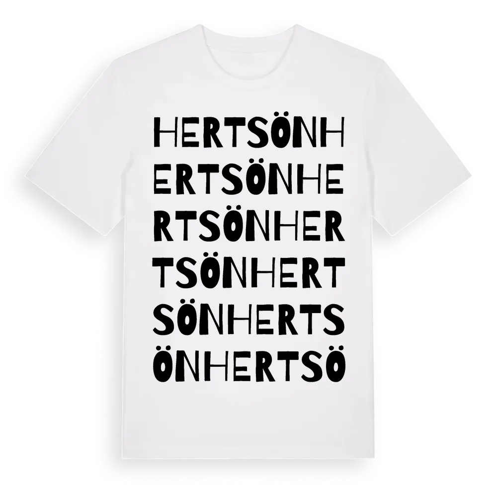 Hertsön ordlek t-shirt är inspirerad av stadsdelen Hertsön i Norrbottens län, Sverige. Tröjan är designad för dig som har en speciell koppling till platsen – oavsett om du bor här, har rötterna här eller bara älskar Hertsön.