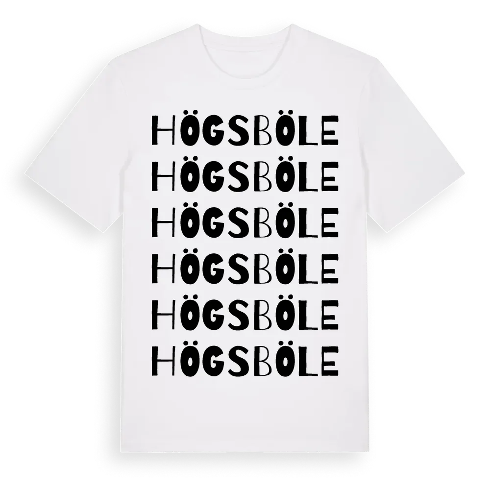 Högsböle ordlek t-shirt är inspirerad av byn Högsböle i Norrbottens län, Sverige. Tröjan är designad för dig som har en speciell koppling till platsen – oavsett om du bor här, har rötterna här eller bara älskar Högsböle.