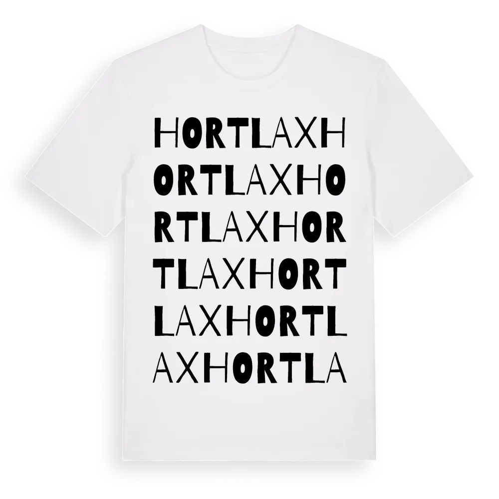 En ordlek byggd på Hortlaxs namn. Subtilt och klurig – ett motiv som bara de som verkligen känner platsen fullt ut förstår. Premium bomull, unisex – från byn Hortlax i Norrbottens län.