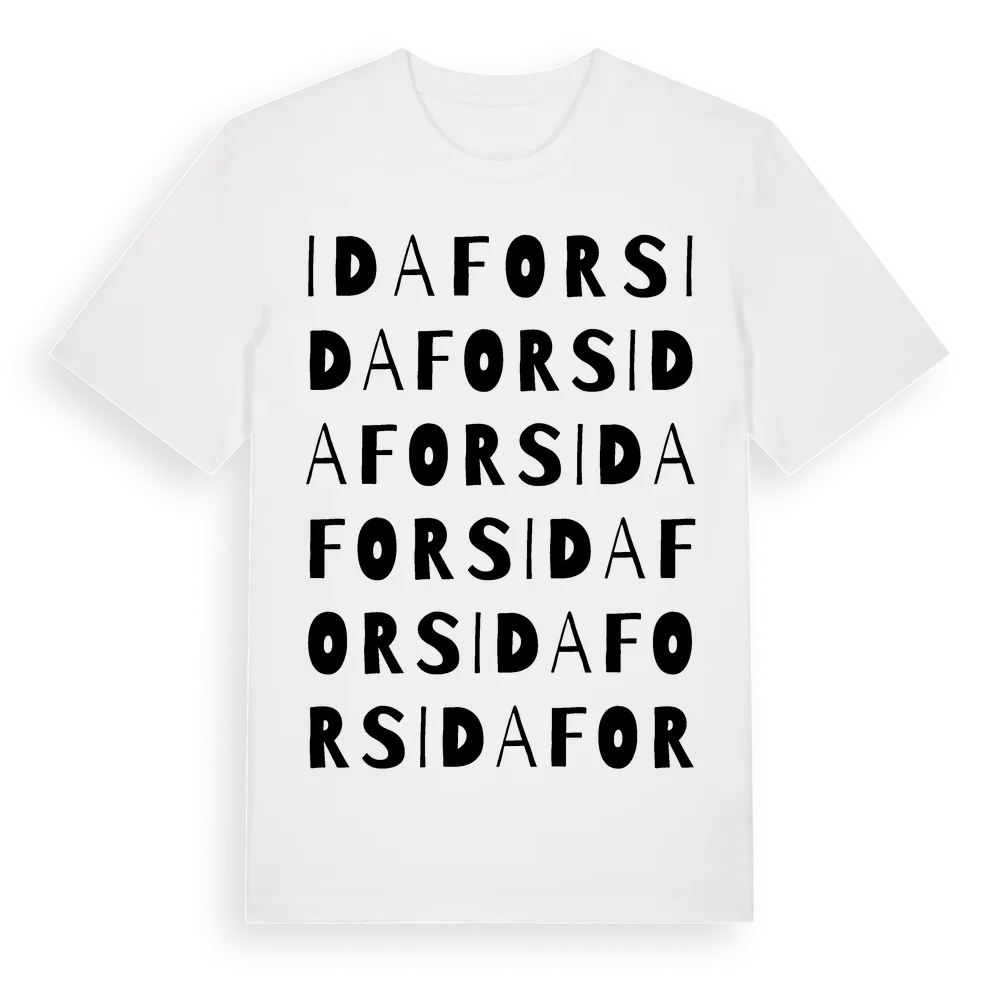 Idafors ordlek t-shirt är inspirerad av Idafors i Norrbottens län, Sverige. Tröjan är designad för dig som har en speciell koppling till platsen – oavsett om du bor här, har rötterna här eller bara älskar Idafors.