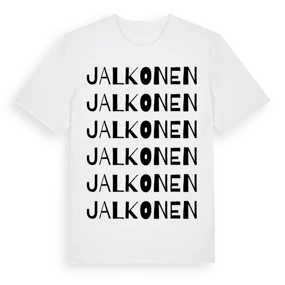 Jalkonen ordlek t-shirt är inspirerad av Jalkonen i Norrbottens län, Sverige. Tröjan är designad för dig som har en speciell koppling till platsen – oavsett om du bor här, har rötterna här eller bara älskar Jalkonen.