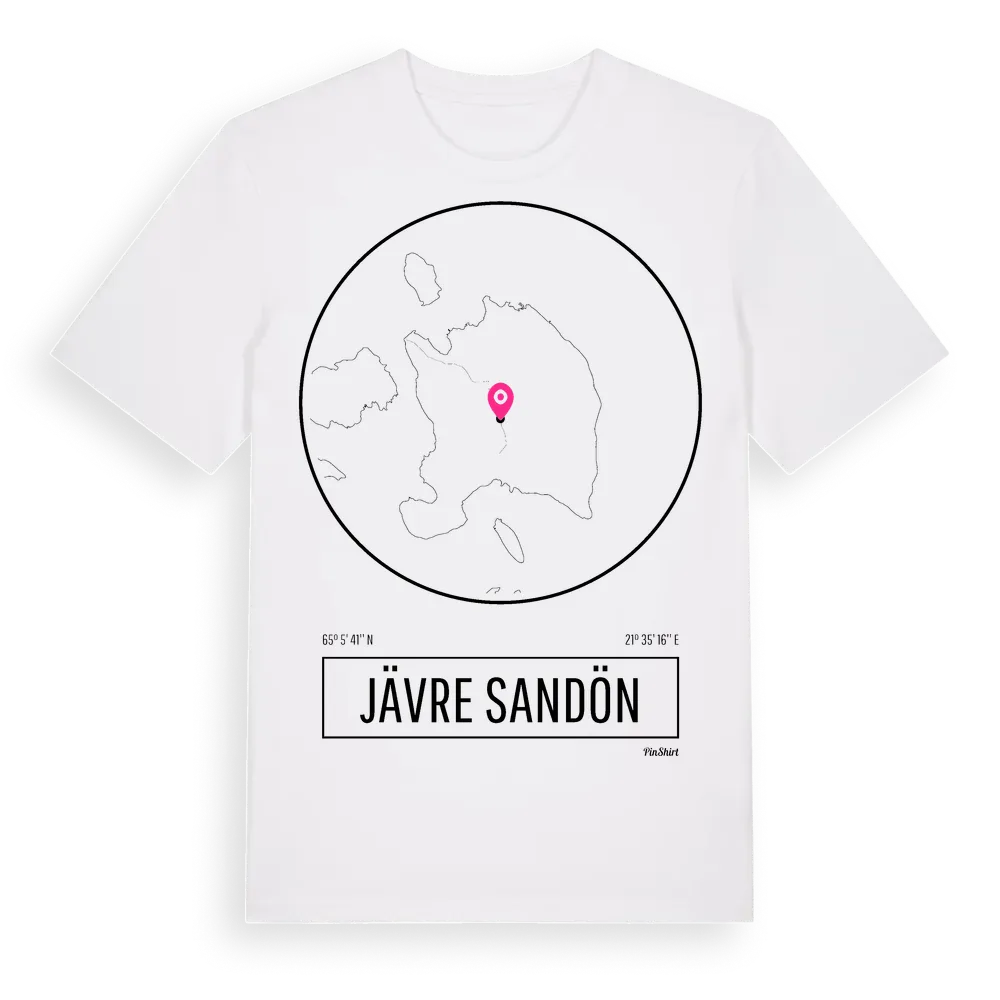Jävre Sandön t-shirt är inspirerad av ön Jävre Sandön i Norrbottens län, Sverige. Tröjan är designad för dig som har en speciell koppling till platsen – oavsett om du bor här, har rötterna här eller bara älskar Jävre Sandön.