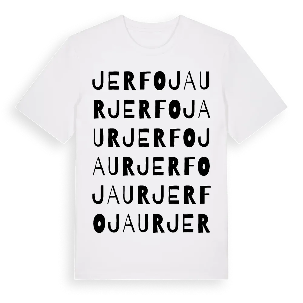 Jerfojaur ordlek t-shirt är inspirerad av Jerfojaur i Norrbottens län, Sverige. Tröjan är designad för dig som har en speciell koppling till platsen – oavsett om du bor här, har rötterna här eller bara älskar Jerfojaur.