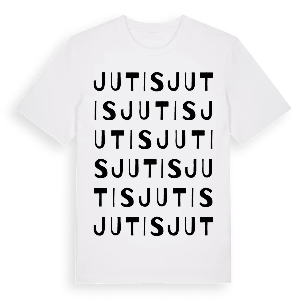 En ordlek byggd på Jutiss namn. Subtilt och klurig – ett motiv som bara de som verkligen känner platsen fullt ut förstår. Premium bomull, unisex – från byn Jutis i Norrbottens län.