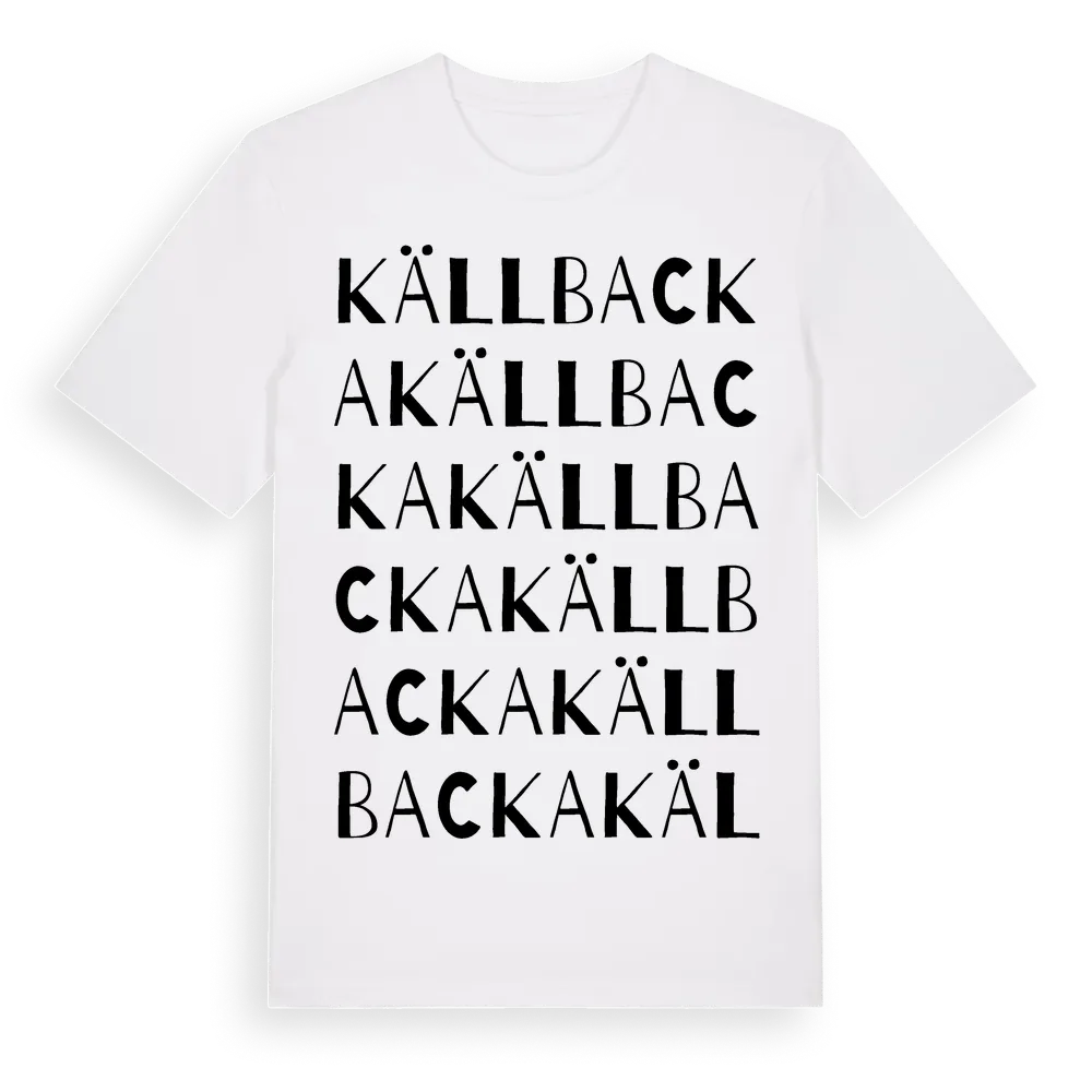 Källbacka ordlek t-shirt är inspirerad av Källbacka i Norrbottens län, Sverige. Tröjan är designad för dig som har en speciell koppling till platsen – oavsett om du bor här, har rötterna här eller bara älskar Källbacka.