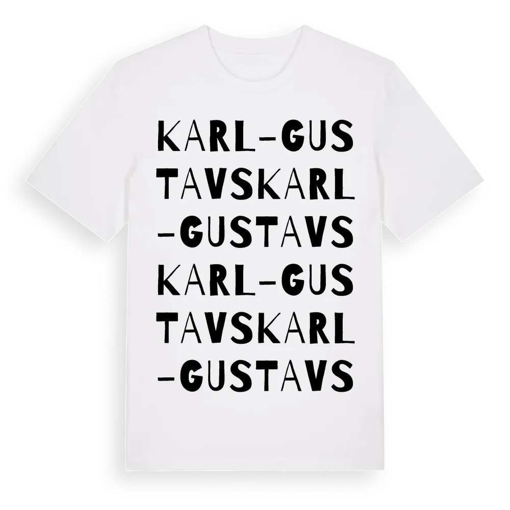 Karl-Gustavs ordlek t-shirt är inspirerad av Karl-Gustavs i Norrbottens län, Sverige. Tröjan är designad för dig som har en speciell koppling till platsen – oavsett om du bor här, har rötterna här eller bara älskar Karl-Gustavs.