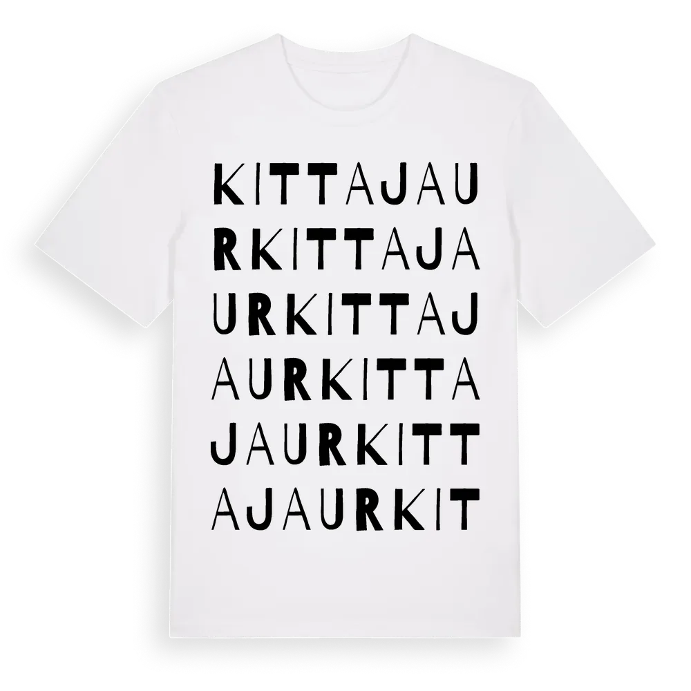 Kittajaur ordlek t-shirt är inspirerad av byn Kittajaur i Norrbottens län, Sverige. Tröjan är designad för dig som har en speciell koppling till platsen – oavsett om du bor här, har rötterna här eller bara älskar Kittajaur.