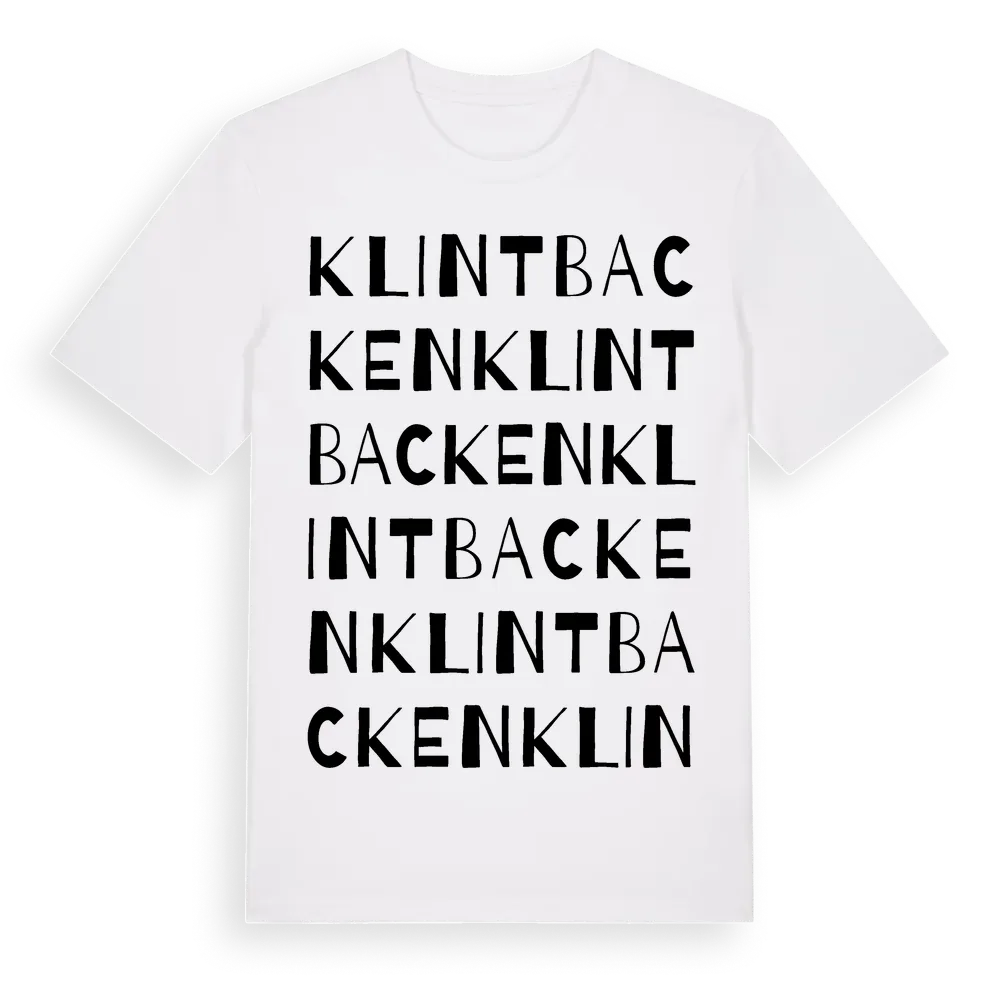 Klintbacken ordlek t-shirt är inspirerad av stadsdelen Klintbacken i Norrbottens län, Sverige. Tröjan är designad för dig som har en speciell koppling till platsen – oavsett om du bor här, har rötterna här eller bara älskar Klintbacken.