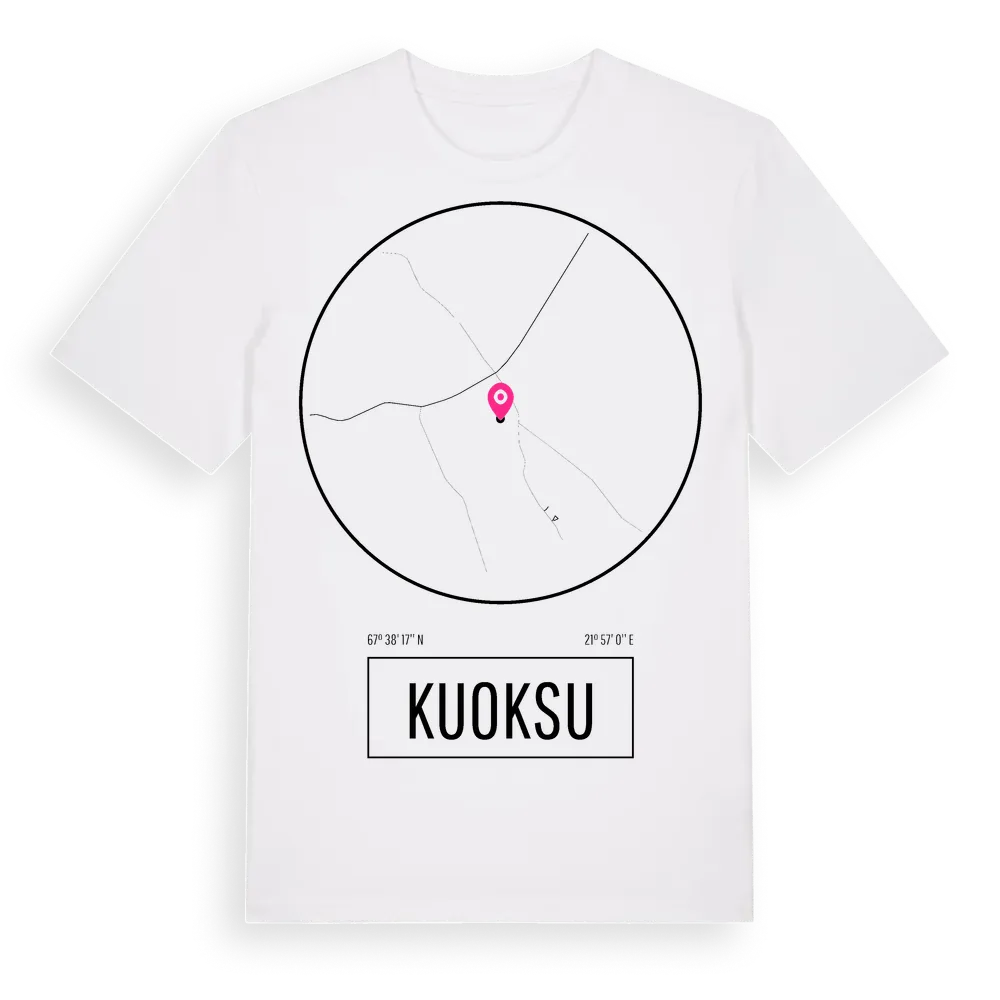 Kuoksu t-shirt är inspirerad av byn Kuoksu i Norrbottens län, Sverige. Tröjan är designad för dig som har en speciell koppling till platsen – oavsett om du bor här, har rötterna här eller bara älskar Kuoksu.