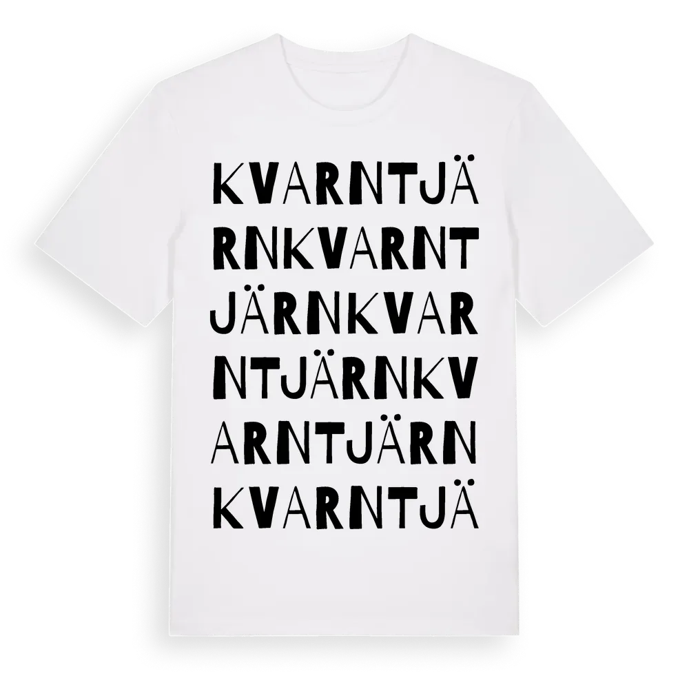 Kvarntjärn ordlek t-shirt är inspirerad av Kvarntjärn i Norrbottens län, Sverige. Tröjan är designad för dig som har en speciell koppling till platsen – oavsett om du bor här, har rötterna här eller bara älskar Kvarntjärn.