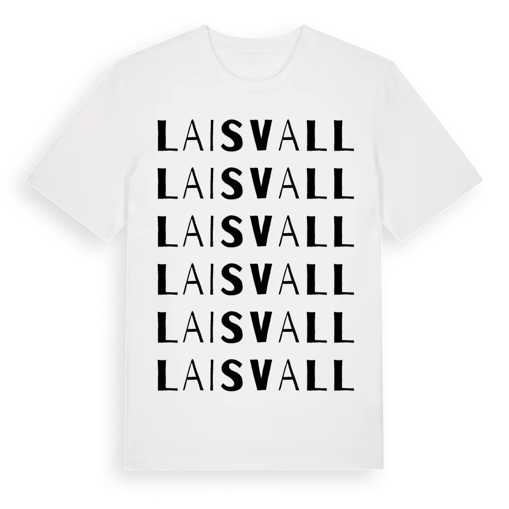 En ordlek byggd på Laisvalls namn. Subtilt och klurig – ett motiv som bara de som verkligen känner platsen fullt ut förstår. Premium bomull, unisex – från byn Laisvall i Norrbottens län.