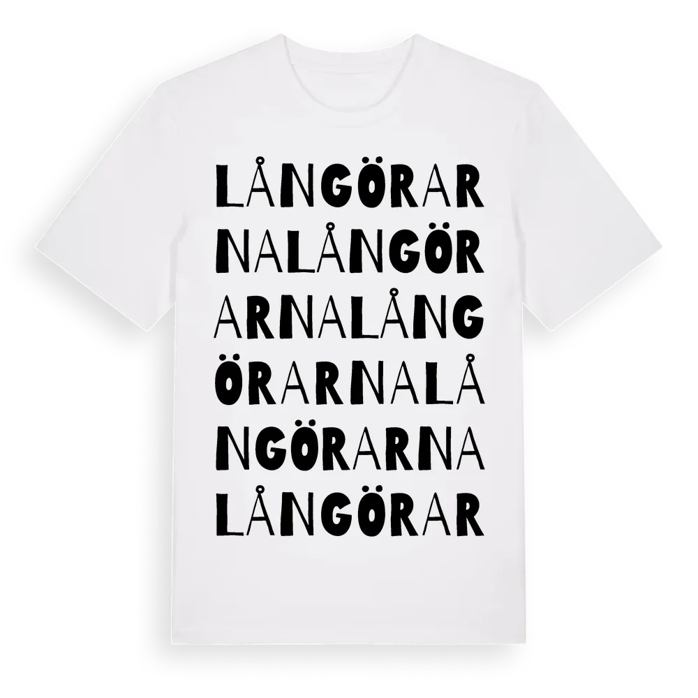 Långörarna ordlek t-shirt är inspirerad av ön Långörarna i Norrbottens län, Sverige. Tröjan är designad för dig som har en speciell koppling till platsen – oavsett om du bor här, har rötterna här eller bara älskar Långörarna.
