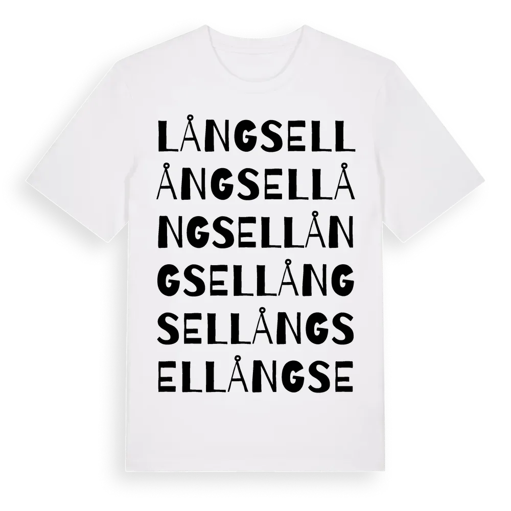 Långsel ordlek t-shirt är inspirerad av byn Långsel i Norrbottens län, Sverige. Tröjan är designad för dig som har en speciell koppling till platsen – oavsett om du bor här, har rötterna här eller bara älskar Långsel.