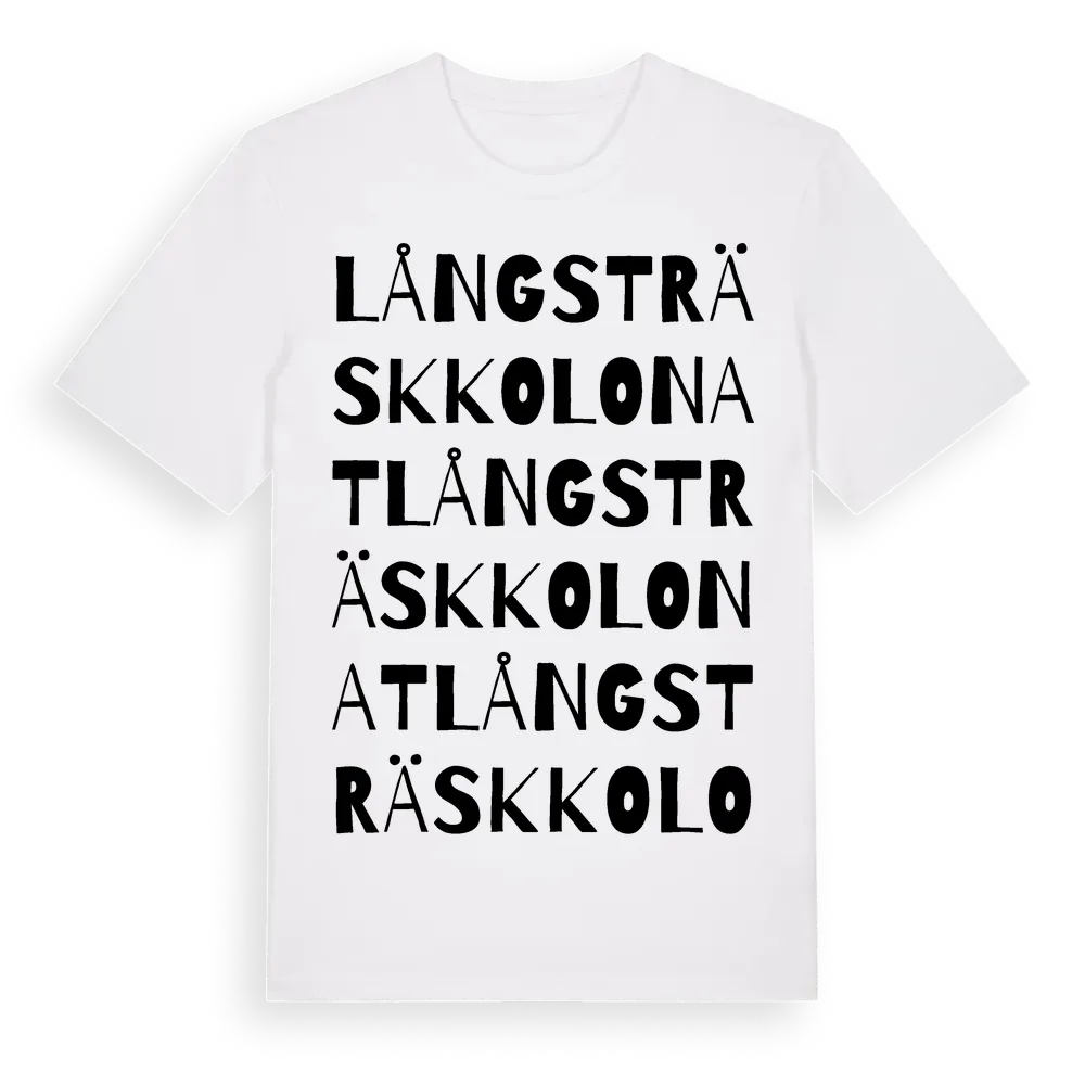 Långsträsk Kolonat ordlek t-shirt är inspirerad av Långsträsk Kolonat i Norrbottens län, Sverige. Tröjan är designad för dig som har en speciell koppling till platsen – oavsett om du bor här, har rötterna här eller bara älskar Långsträsk Kolonat.