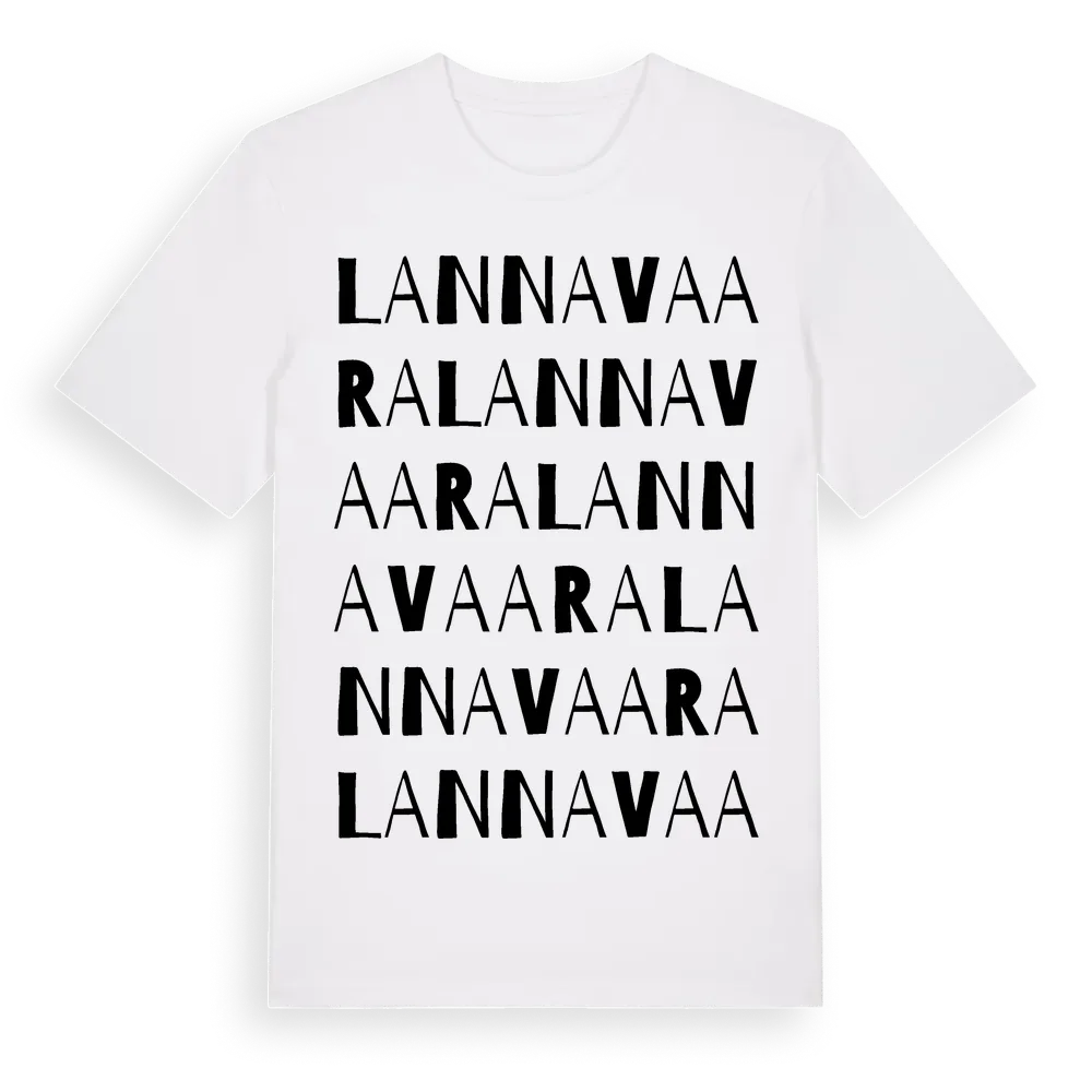 En ordlek byggd på Lannavaaras namn. Subtilt och klurig – ett motiv som bara de som verkligen känner platsen fullt ut förstår. Premium bomull, unisex – från byn Lannavaara i Norrbottens län.