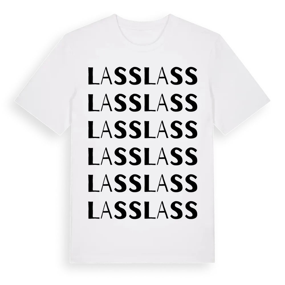 En ordlek byggd på Lasss namn. Subtilt och klurig – ett motiv som bara de som verkligen känner platsen fullt ut förstår. Premium bomull, unisex – från Lass i Norrbottens län.