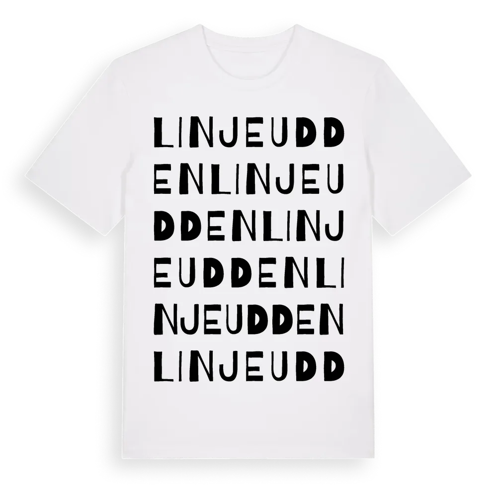 Linjeudden ordlek t-shirt är inspirerad av Linjeudden i Norrbottens län, Sverige. Tröjan är designad för dig som har en speciell koppling till platsen – oavsett om du bor här, har rötterna här eller bara älskar Linjeudden.