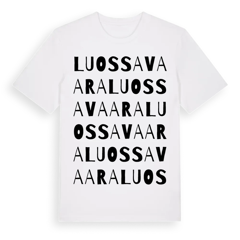 En ordlek byggd på Luossavaaras namn. Subtilt och klurig – ett motiv som bara de som verkligen känner platsen fullt ut förstår. Premium bomull, unisex – från stadsdelen Luossavaara i Norrbottens län.