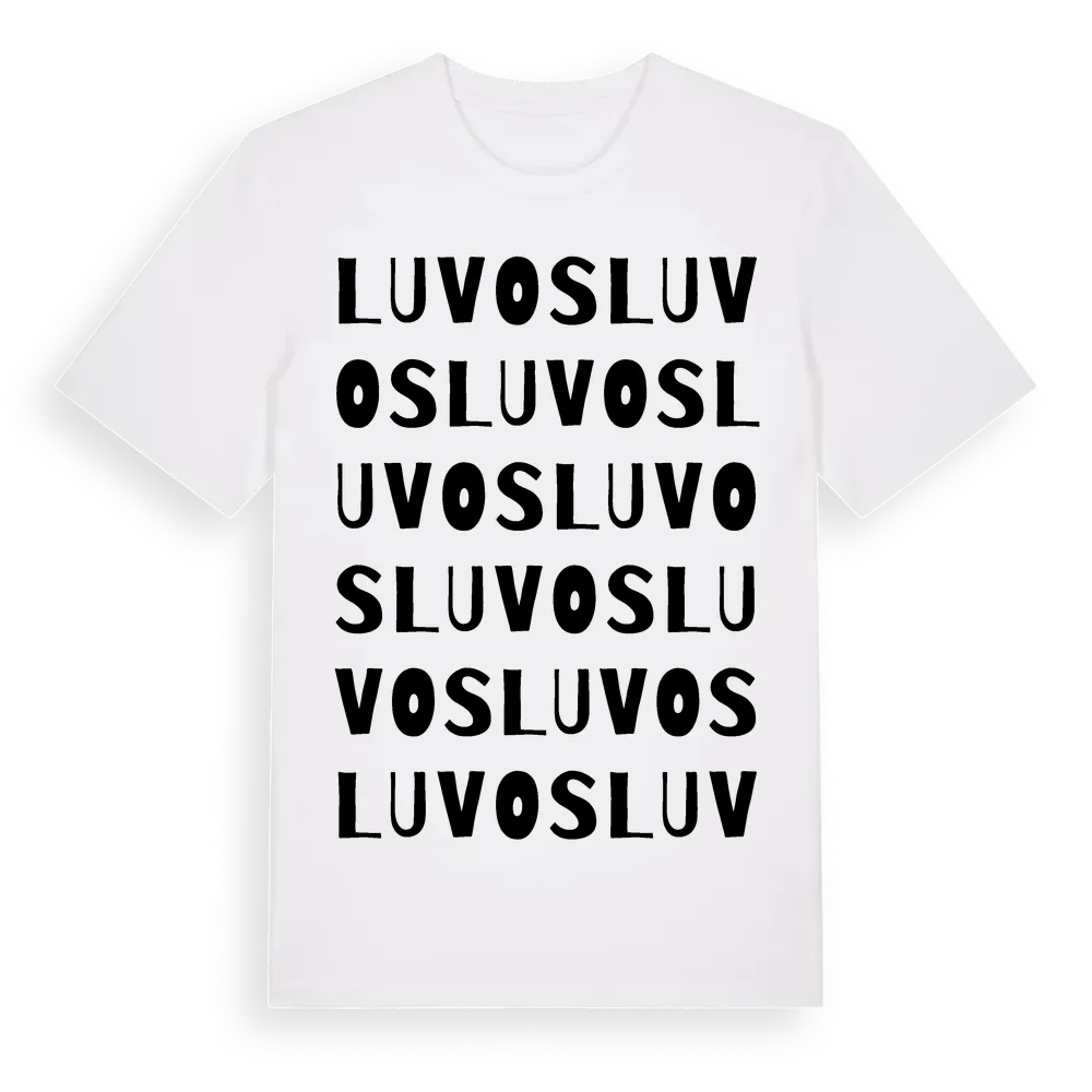 Luvos ordlek t-shirt är inspirerad av byn Luvos i Norrbottens län, Sverige. Tröjan är designad för dig som har en speciell koppling till platsen – oavsett om du bor här, har rötterna här eller bara älskar Luvos.
