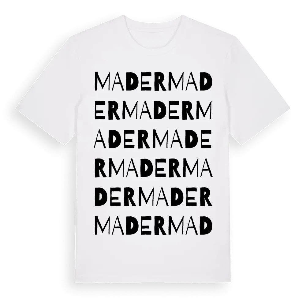 Mader ordlek t-shirt är inspirerad av Mader i Norrbottens län, Sverige. Tröjan är designad för dig som har en speciell koppling till platsen – oavsett om du bor här, har rötterna här eller bara älskar Mader.