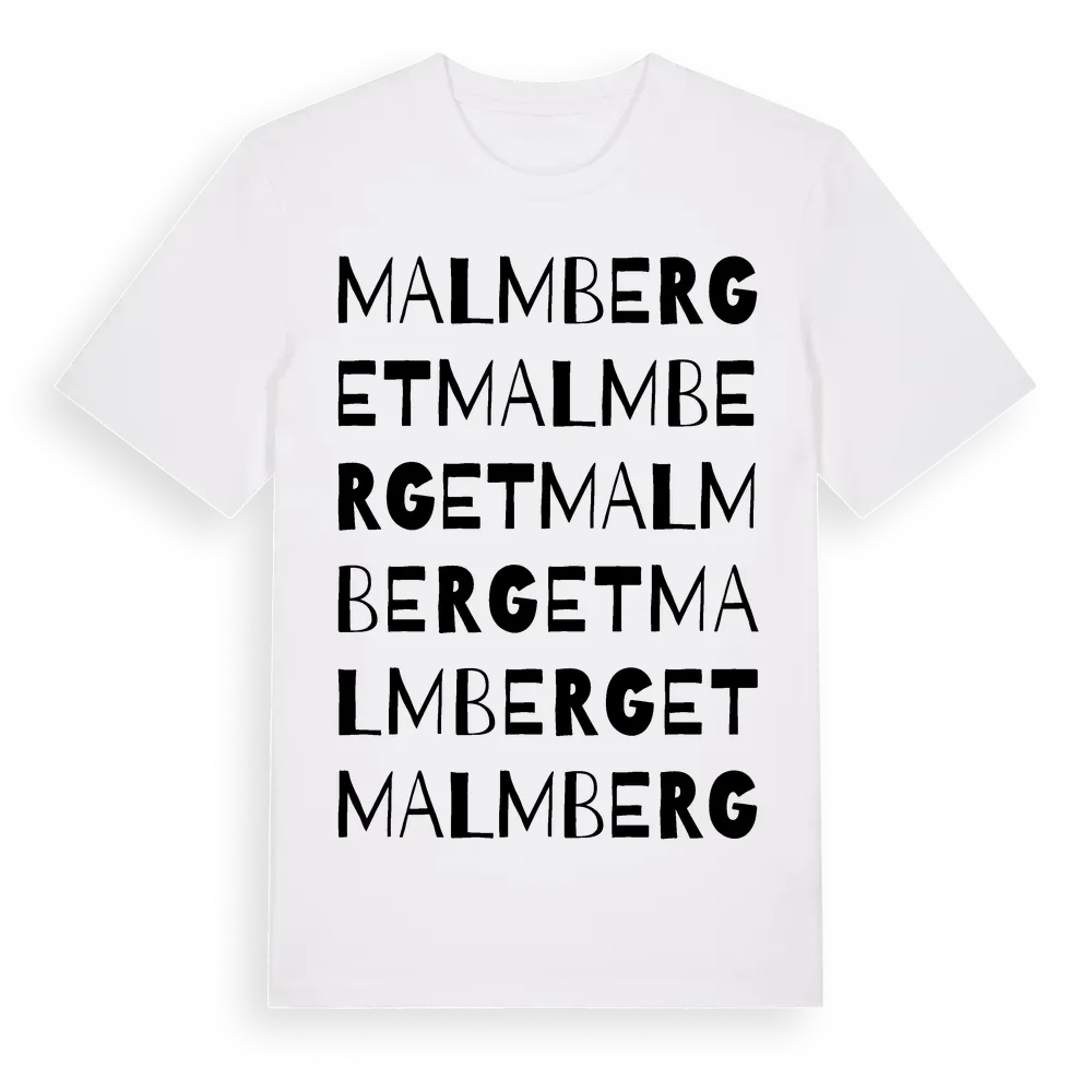 Malmberget ordlek t-shirt är inspirerad av stadsdelen Malmberget i Norrbottens län, Sverige. Tröjan är designad för dig som har en speciell koppling till platsen – oavsett om du bor här, har rötterna här eller bara älskar Malmberget.