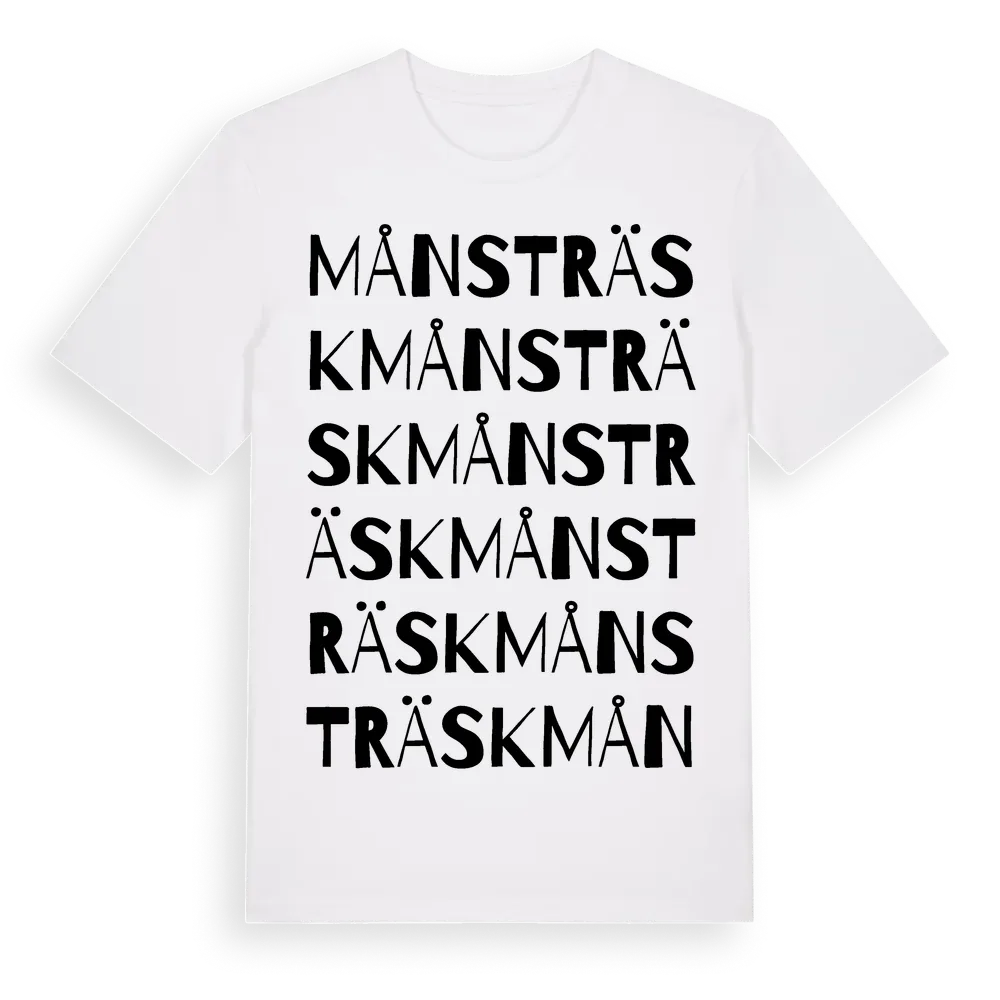 Månsträsk ordlek t-shirt är inspirerad av byn Månsträsk i Norrbottens län, Sverige. Tröjan är designad för dig som har en speciell koppling till platsen – oavsett om du bor här, har rötterna här eller bara älskar Månsträsk.
