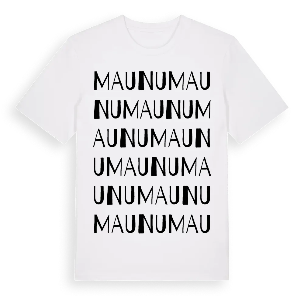 En ordlek byggd på Maunus namn. Subtilt och klurig – ett motiv som bara de som verkligen känner platsen fullt ut förstår. Premium bomull, unisex – från byn Maunu i Norrbottens län.