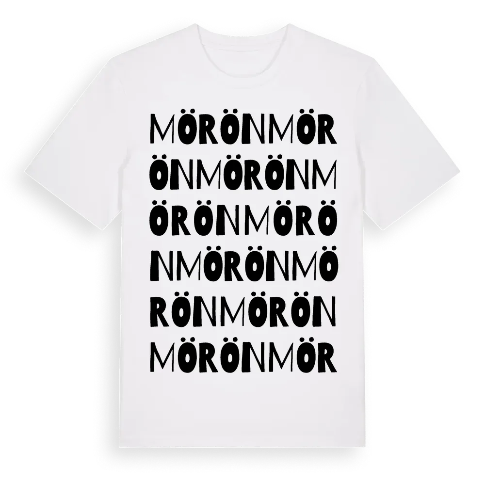 Mörön ordlek t-shirt är inspirerad av byn Mörön i Norrbottens län, Sverige. Tröjan är designad för dig som har en speciell koppling till platsen – oavsett om du bor här, har rötterna här eller bara älskar Mörön.