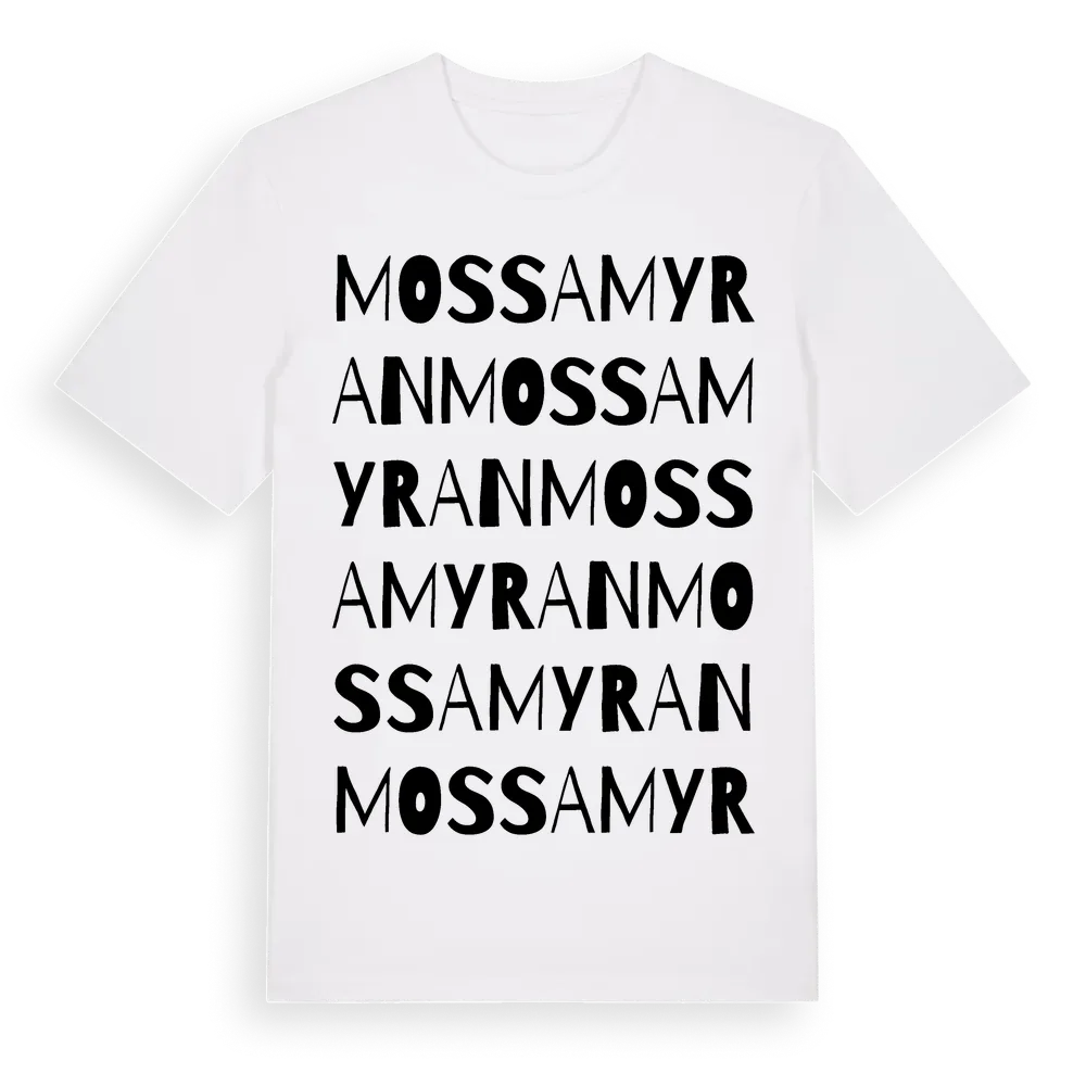 En ordlek byggd på Mossamyrans namn. Subtilt och klurig – ett motiv som bara de som verkligen känner platsen fullt ut förstår. Premium bomull, unisex – från Mossamyran i Norrbottens län.
