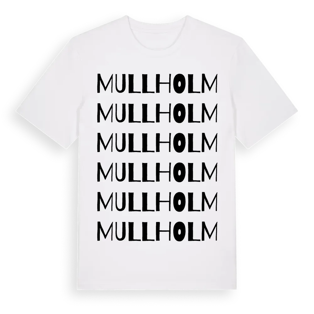 En ordlek byggd på Mullholms namn. Subtilt och klurig – ett motiv som bara de som verkligen känner platsen fullt ut förstår. Premium bomull, unisex – från ön Mullholm i Norrbottens län.