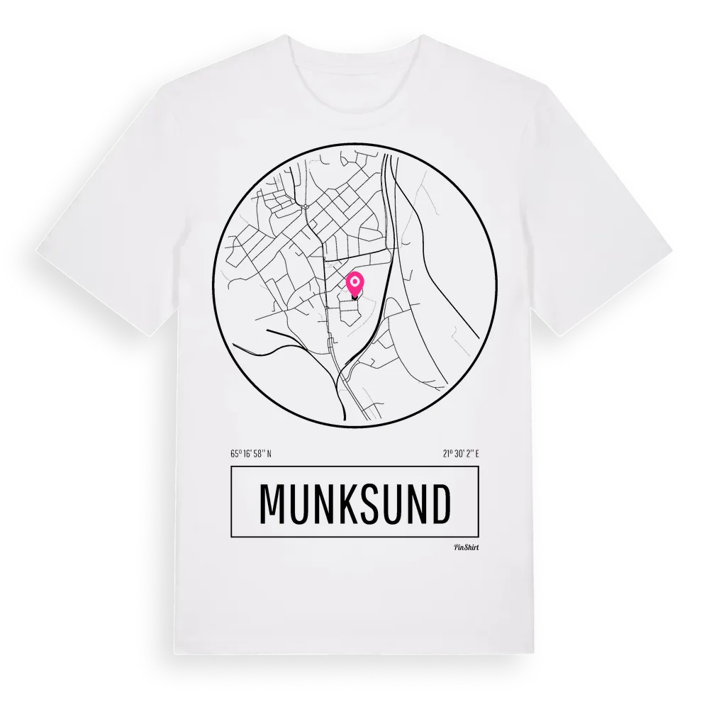 Munksund t-shirt är inspirerad av stadsdelen Munksund i Norrbottens län, Sverige. Tröjan är designad för dig som har en speciell koppling till platsen – oavsett om du bor här, har rötterna här eller bara älskar Munksund.