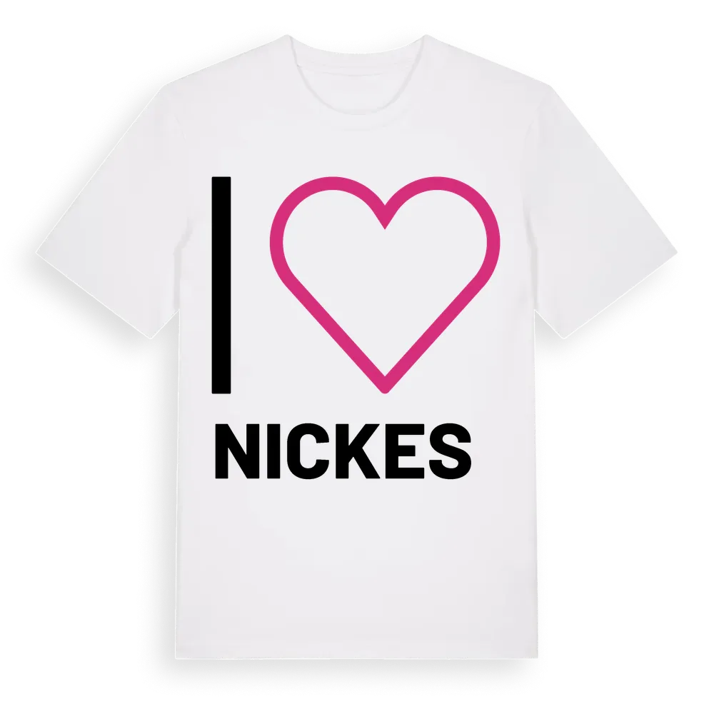 Det klassiska "I ❤ Nickes"-motivet i stort format som täcker hela bröstet. För dig som vill visa kärleken till Nickes på riktigt. Premium bomull, unisex – från Nickes i Norrbottens län.