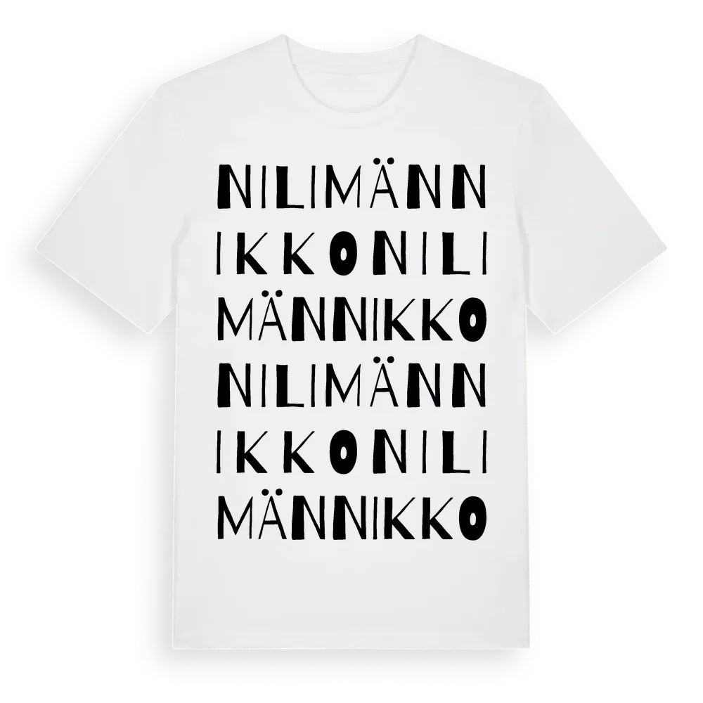 En ordlek byggd på Nilimännikkos namn. Subtilt och klurig – ett motiv som bara de som verkligen känner platsen fullt ut förstår. Premium bomull, unisex – från Nilimännikko i Norrbottens län.