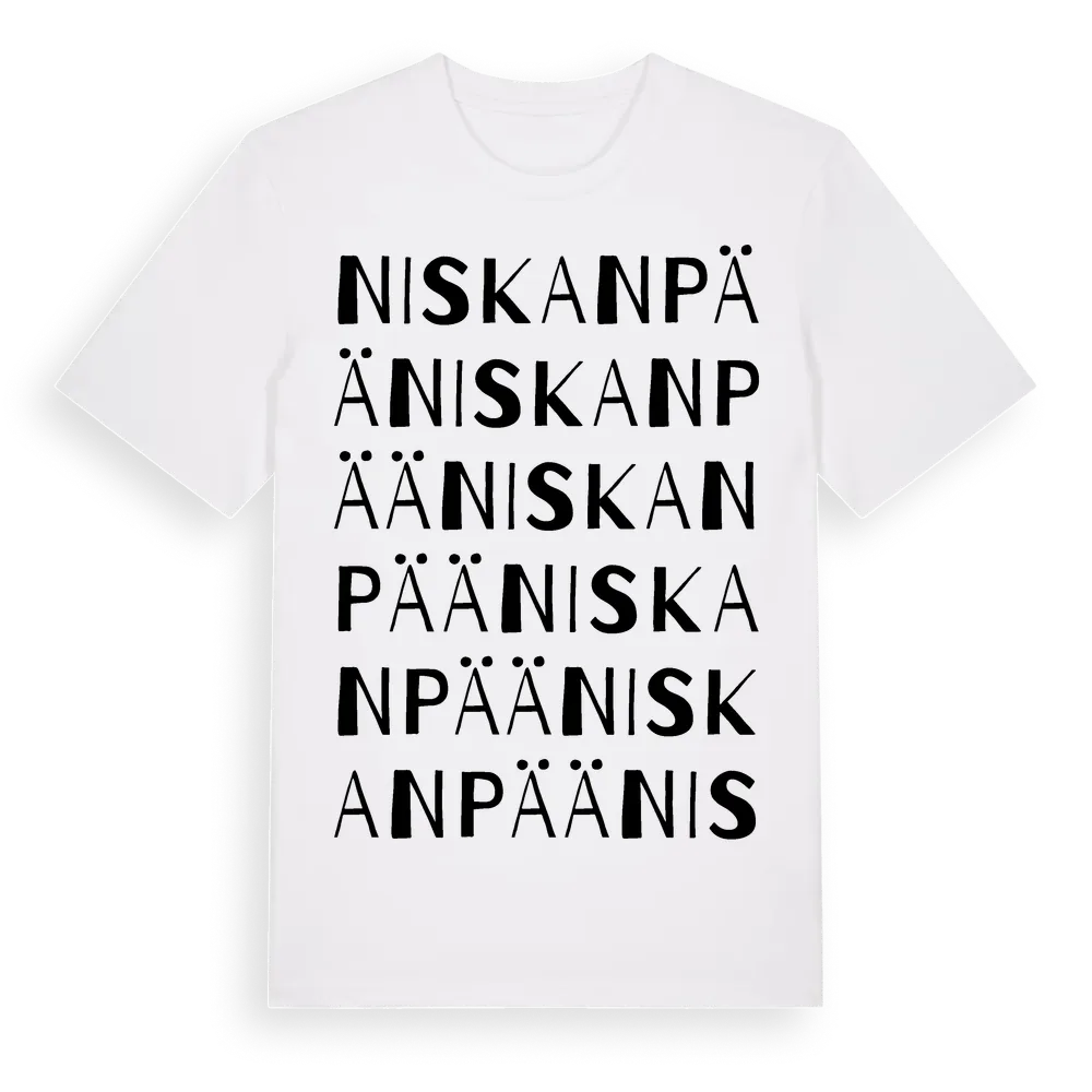 En ordlek byggd på Niskanpääs namn. Subtilt och klurig – ett motiv som bara de som verkligen känner platsen fullt ut förstår. Premium bomull, unisex – från Niskanpää i Norrbottens län.
