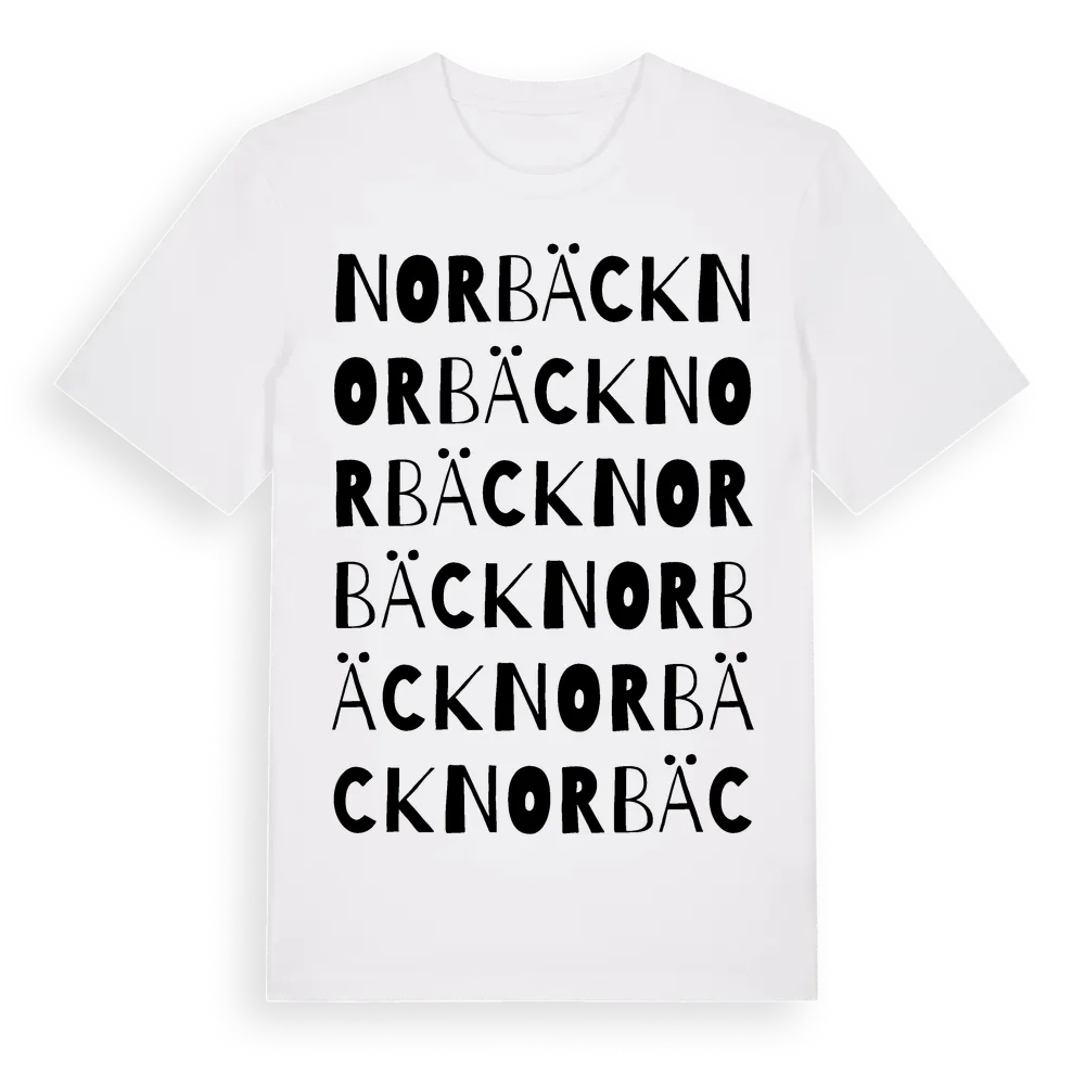 Norbäck ordlek t-shirt är inspirerad av Norbäck i Norrbottens län, Sverige. Tröjan är designad för dig som har en speciell koppling till platsen – oavsett om du bor här, har rötterna här eller bara älskar Norbäck.