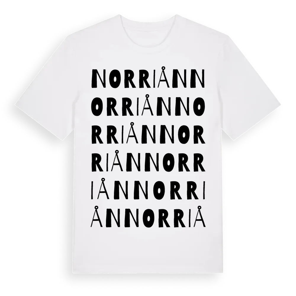 Norriån ordlek t-shirt är inspirerad av byn Norriån i Norrbottens län, Sverige. Tröjan är designad för dig som har en speciell koppling till platsen – oavsett om du bor här, har rötterna här eller bara älskar Norriån.