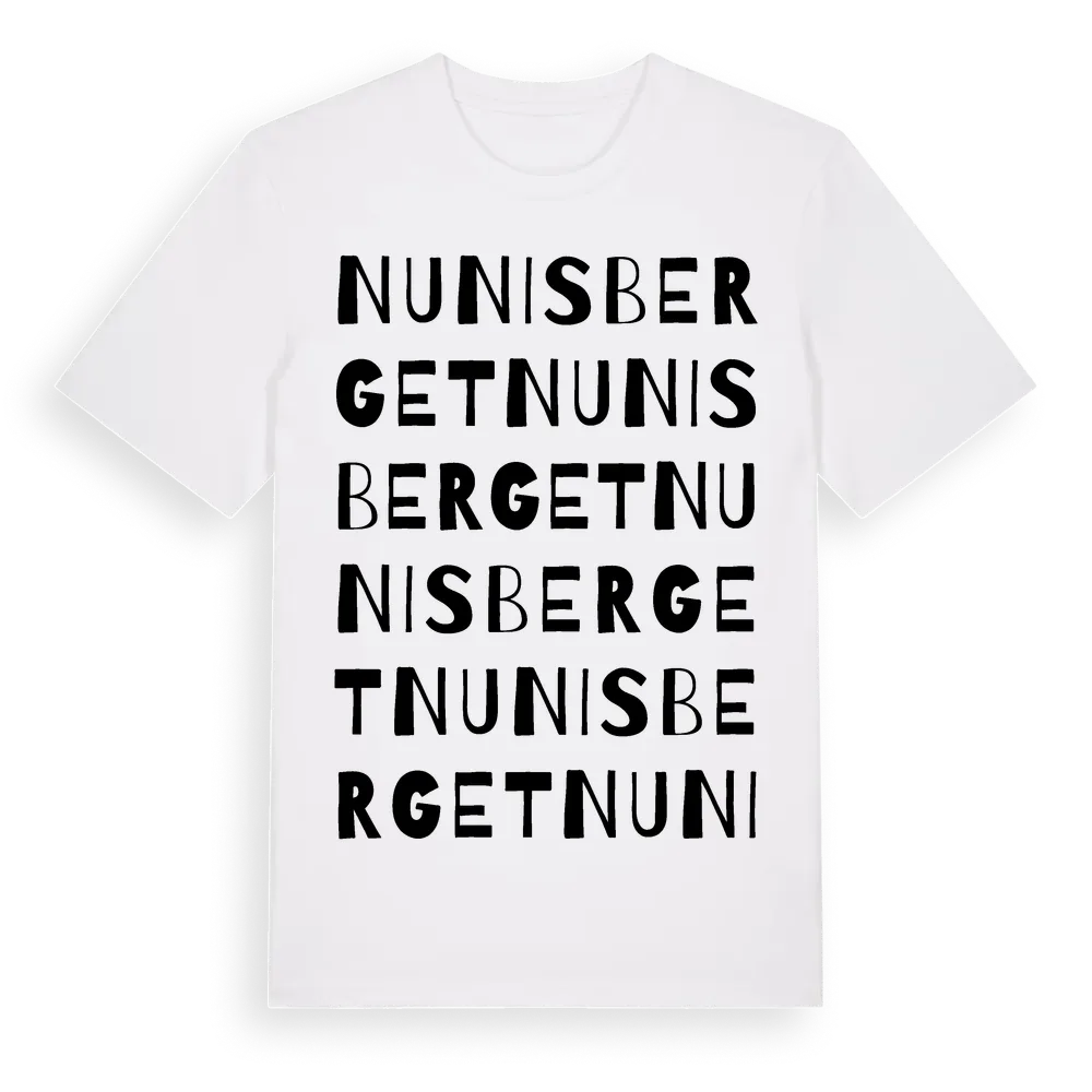 Nunisberget ordlek t-shirt är inspirerad av Nunisberget i Norrbottens län, Sverige. Tröjan är designad för dig som har en speciell koppling till platsen – oavsett om du bor här, har rötterna här eller bara älskar Nunisberget.