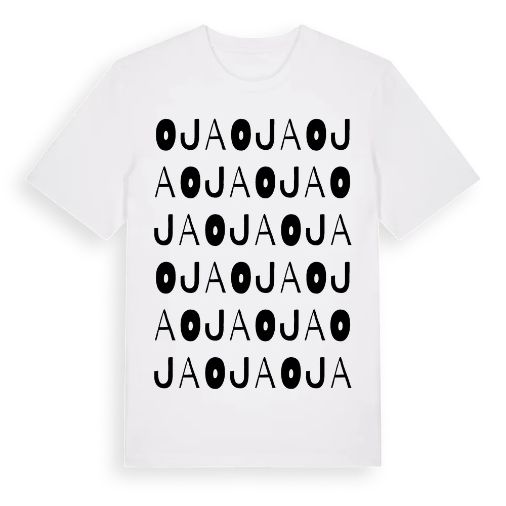 Oja ordlek t-shirt är inspirerad av Oja i Norrbottens län, Sverige. Tröjan är designad för dig som har en speciell koppling till platsen – oavsett om du bor här, har rötterna här eller bara älskar Oja.