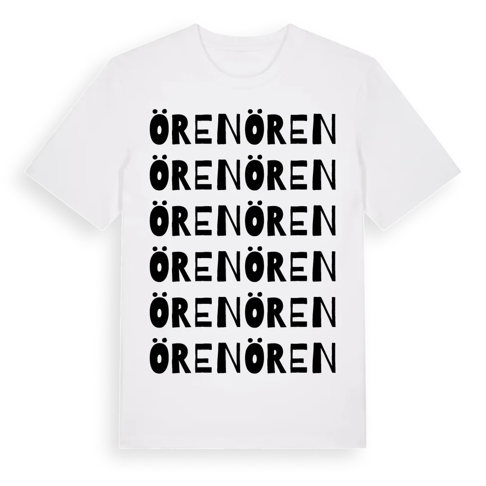 Ören ordlek t-shirt är inspirerad av byn Ören i Norrbottens län, Sverige. Tröjan är designad för dig som har en speciell koppling till platsen – oavsett om du bor här, har rötterna här eller bara älskar Ören.
