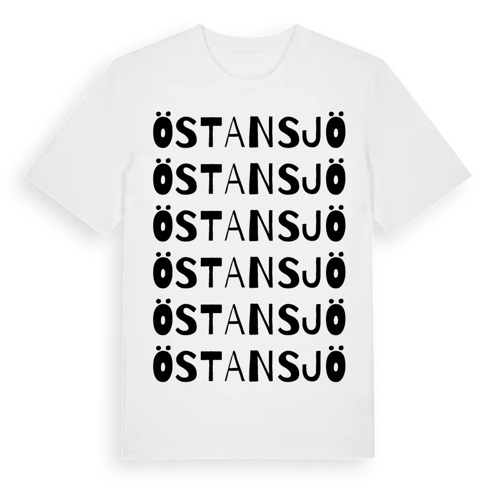 Östansjö ordlek t-shirt är inspirerad av byn Östansjö i Norrbottens län, Sverige. Tröjan är designad för dig som har en speciell koppling till platsen – oavsett om du bor här, har rötterna här eller bara älskar Östansjö.