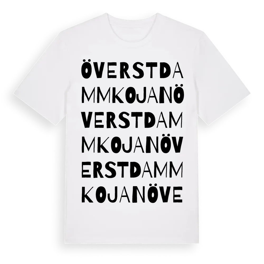 Överstdammkojan ordlek t-shirt är inspirerad av Överstdammkojan i Norrbottens län, Sverige. Tröjan är designad för dig som har en speciell koppling till platsen – oavsett om du bor här, har rötterna här eller bara älskar Överstdammkojan.
