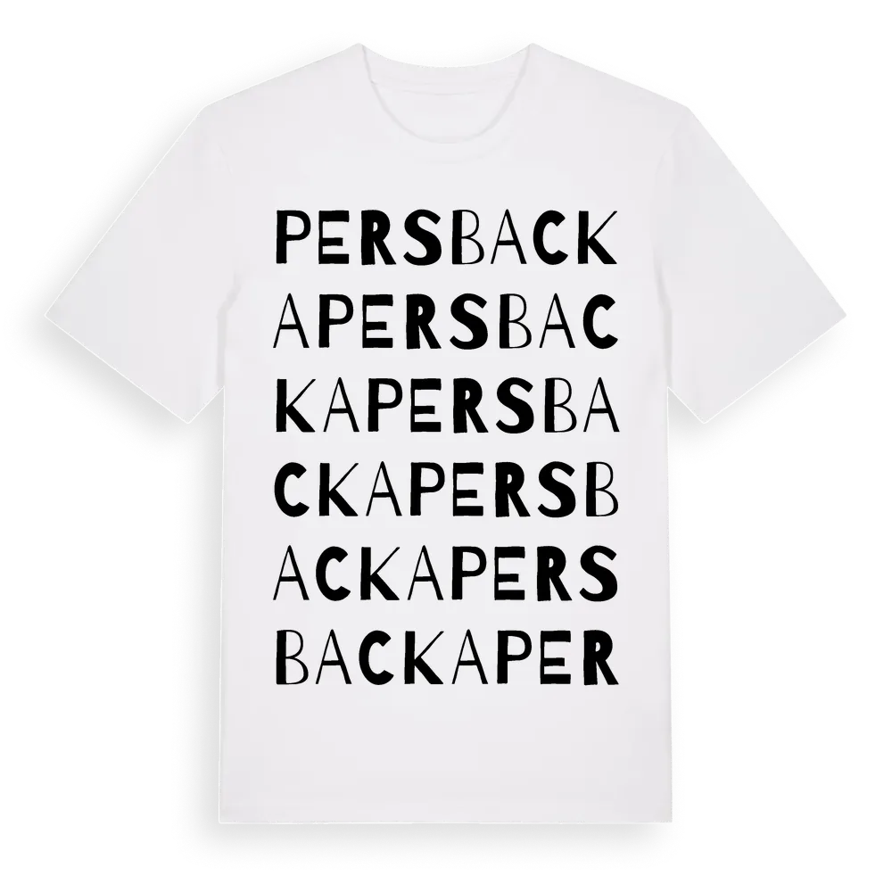Persbacka ordlek t-shirt är inspirerad av Persbacka i Norrbottens län, Sverige. Tröjan är designad för dig som har en speciell koppling till platsen – oavsett om du bor här, har rötterna här eller bara älskar Persbacka.