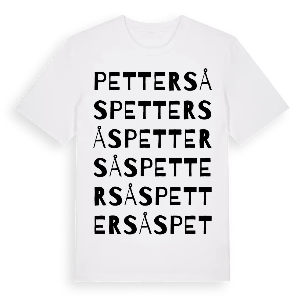 Pettersås ordlek t-shirt är inspirerad av Pettersås i Norrbottens län, Sverige. Tröjan är designad för dig som har en speciell koppling till platsen – oavsett om du bor här, har rötterna här eller bara älskar Pettersås.