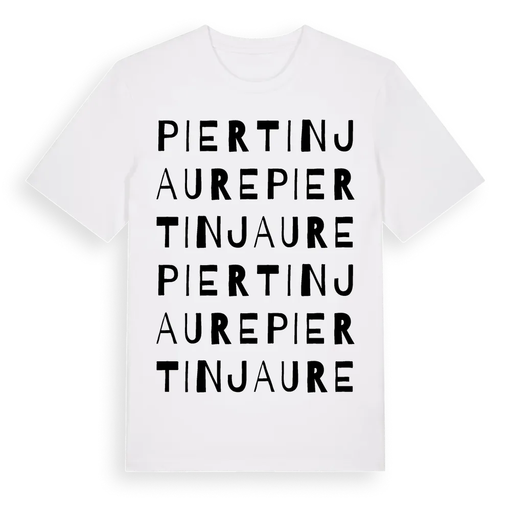 En ordlek byggd på Piertinjaures namn. Subtilt och klurig – ett motiv som bara de som verkligen känner platsen fullt ut förstår. Premium bomull, unisex – från byn Piertinjaure i Norrbottens län.